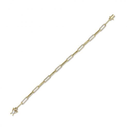 14k Yellow gold diamond paperclip link bracelet featuring .74 carats of diamonds.